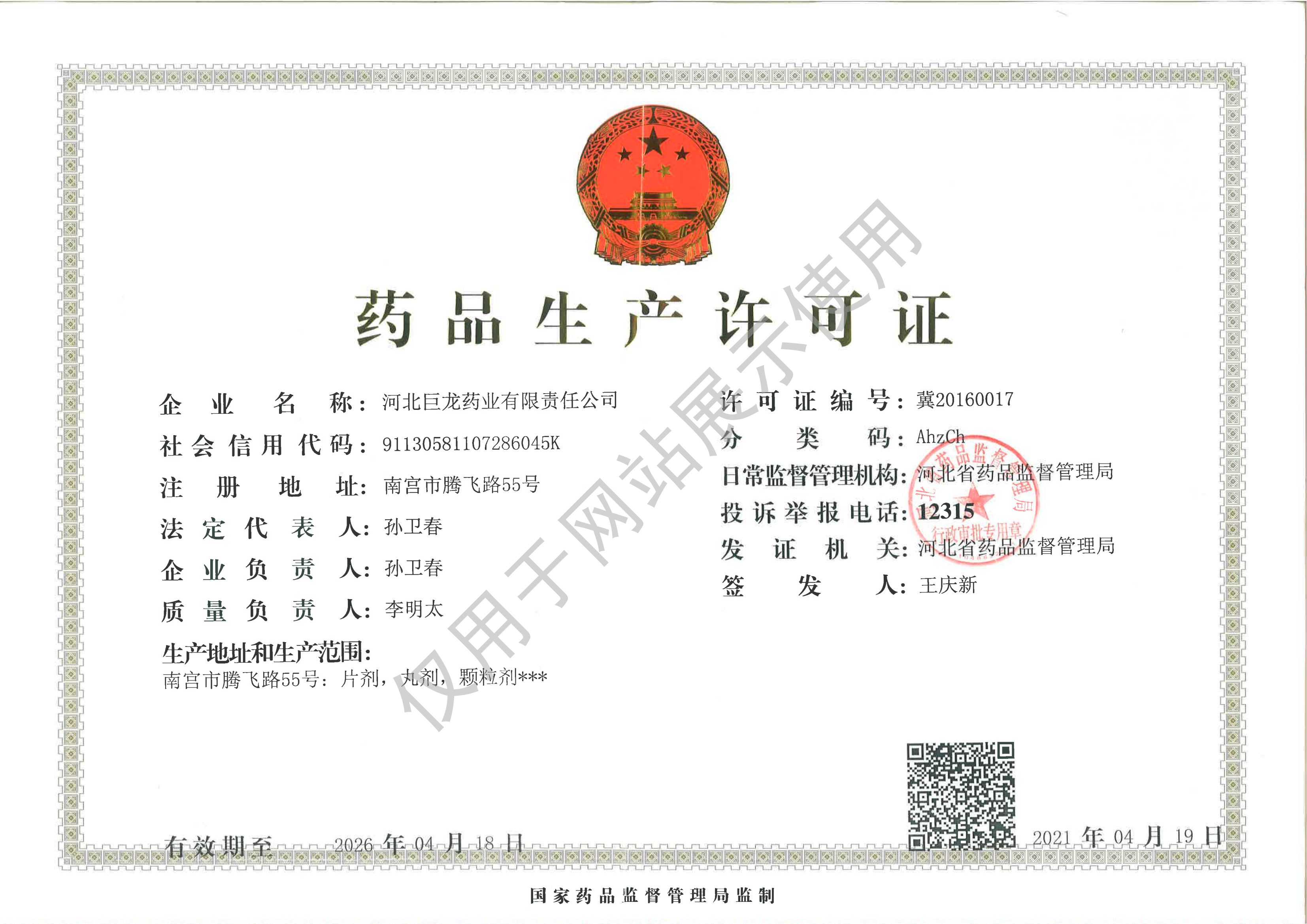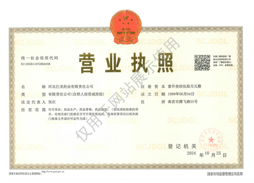 版權所有:河北巨龍藥業(yè)有限責任公司 冀ICP備19023826號-1   1733465040158507.png  冀公網(wǎng)安備13058102000452號 證書編號 :(冀)-非經(jīng)營性-XXXX-XXXX